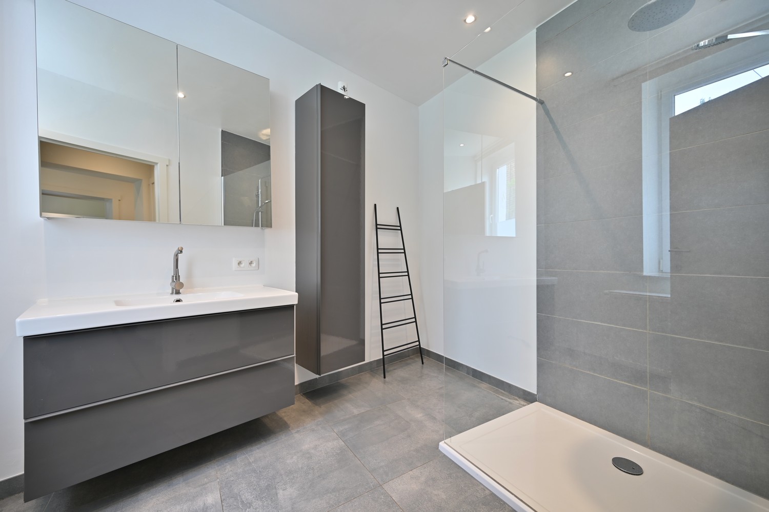- Moderne badkamer met glazen inloopdouche en wastafelmeubel