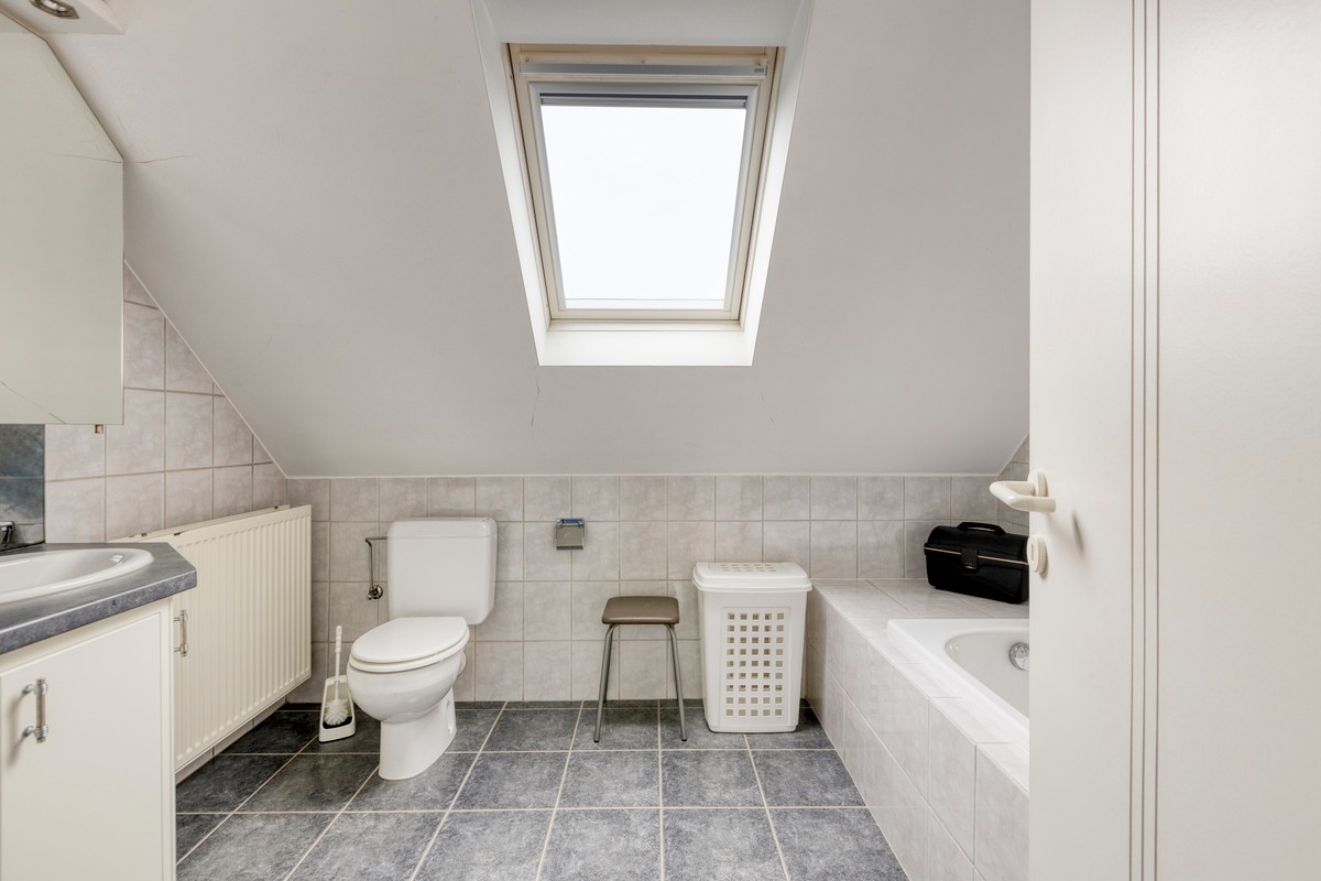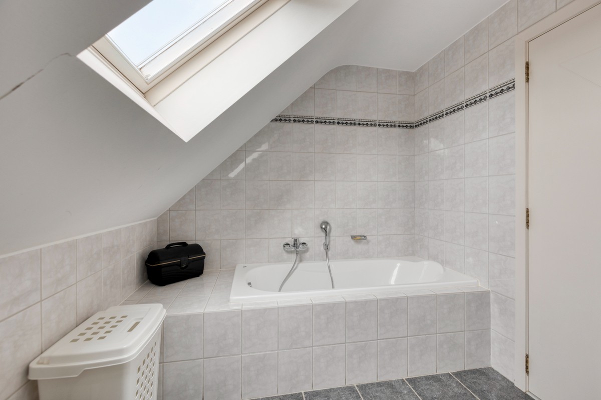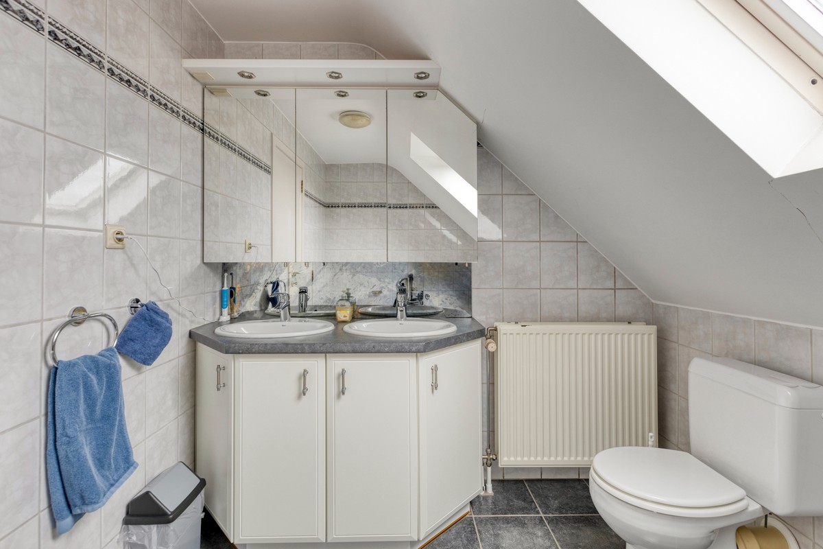 - badkamer (tegelvloer) voorzien van ligbad, meubel met 2 wastafel en toilet