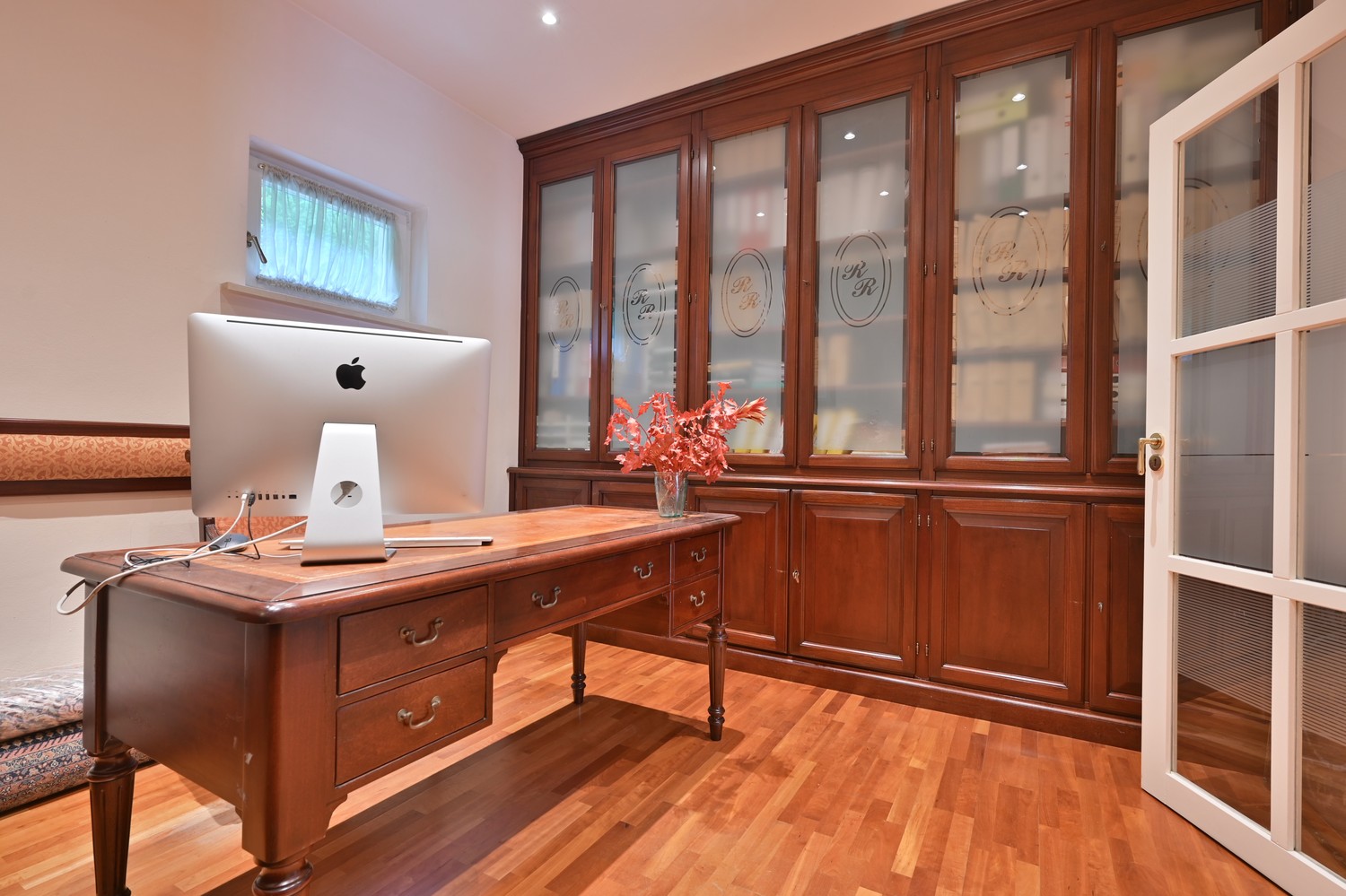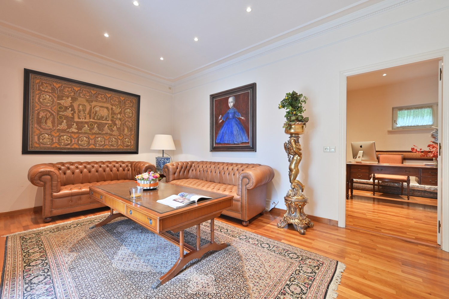 De villa werd tot voor kort bewoond in combinatie met een praktijk/kliniek en biedt daardoor uiteenlopende opties: wonen met kantoor of praktijk aan huis, een inpandig appartement voor ouders of au-pair, of het opnieuw inrichten als royale gezinswoning.