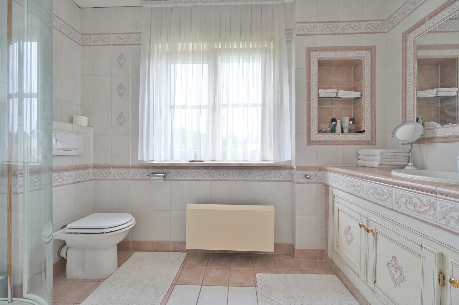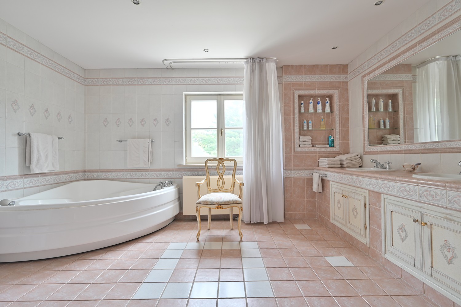 - hoofdbadkamer (ca. 12 m²) met ligbad en wastafelmeubel.