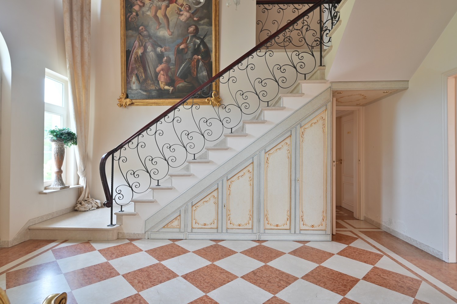 - overloop bereikbaar via een indrukwekkende marmeren trap met smeedijzeren leuning.