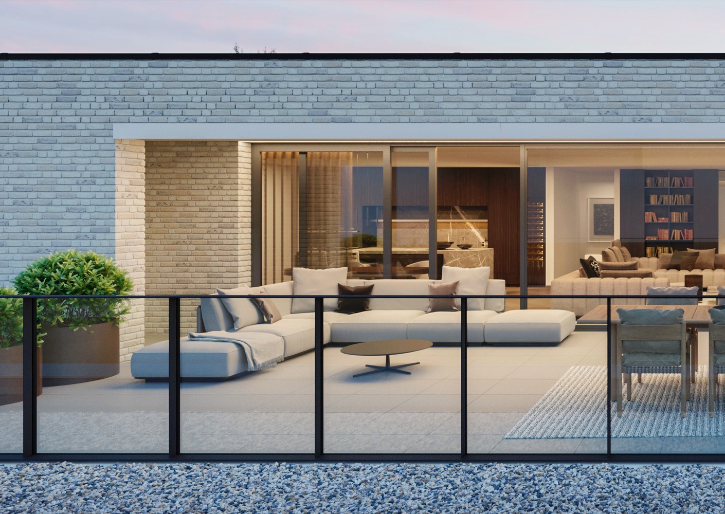 Alle villamenten hebben opvallend ruime leefterrassen waar het aangenaam vertoeven is. Bij de villamenten op het gelijkvloers loopt het terras naadloos over in een eigen privé-tuin.