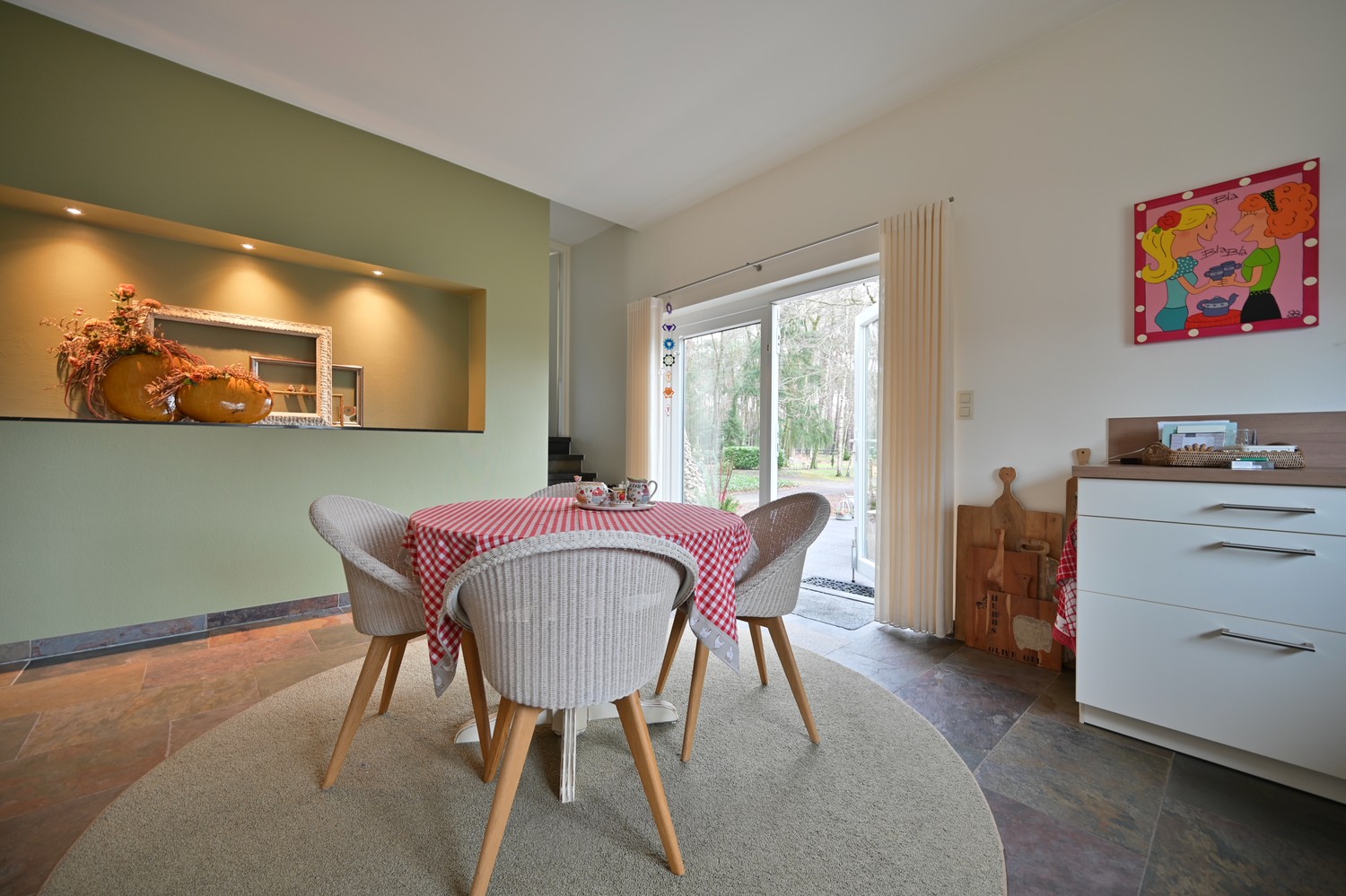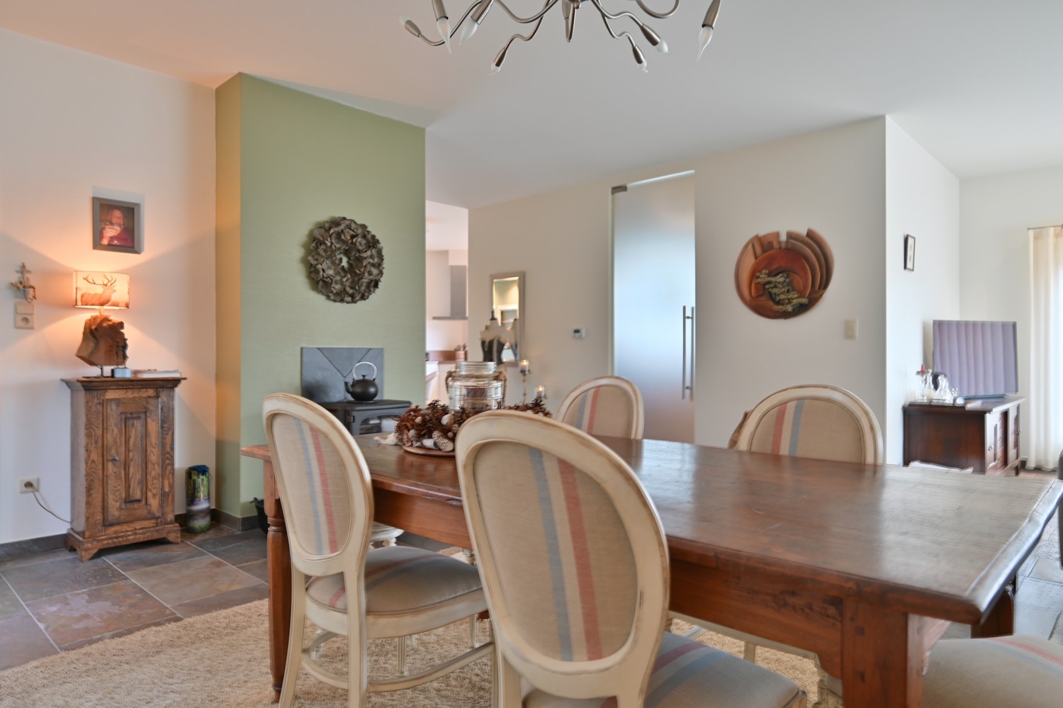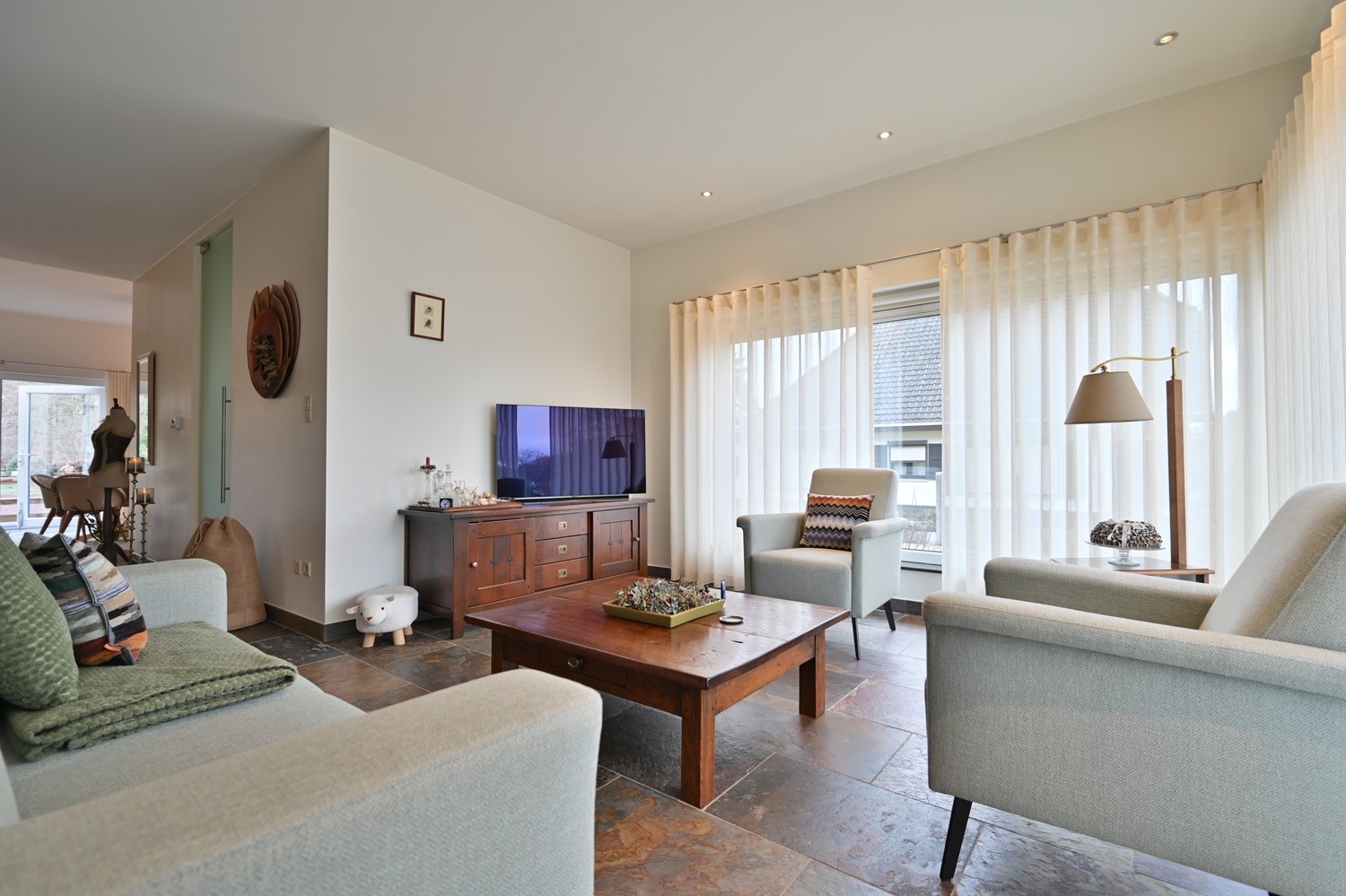 De woning werd grondig en smaakvol gerenoveerd, waarbij comfort en hedendaags woonplezier centraal staan. Grote raampartijen verbinden het interieur met het omliggende groen en zorgen voor een rustgevend uitzicht in elk seizoen.