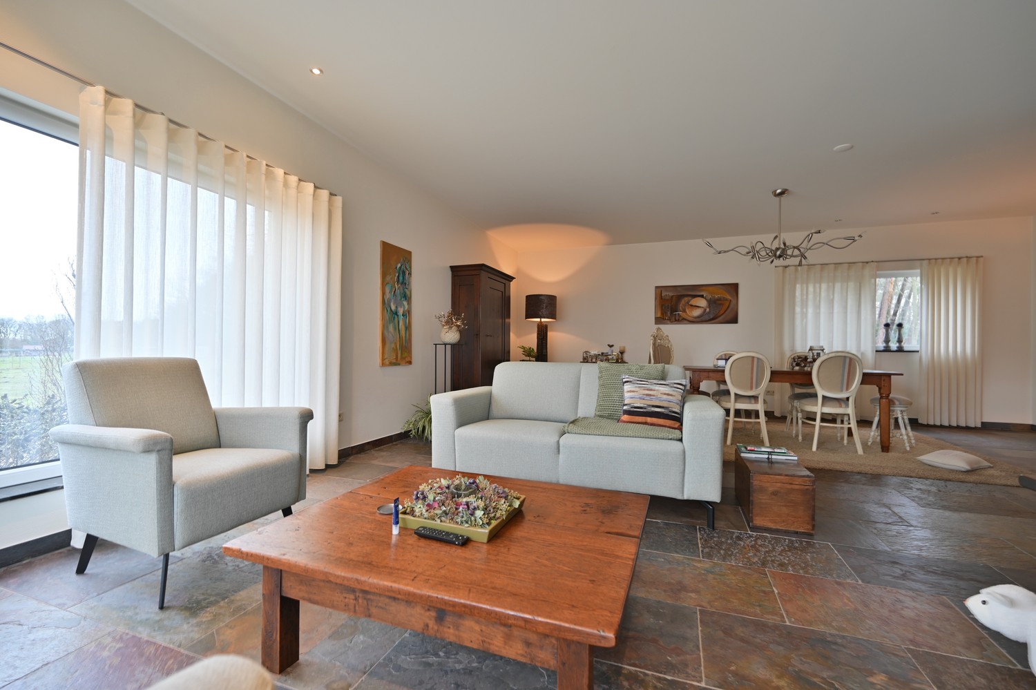 Begane grond 116 m² (natuur leistenen vloer + vloerverwarming + plafond 2,70 m)