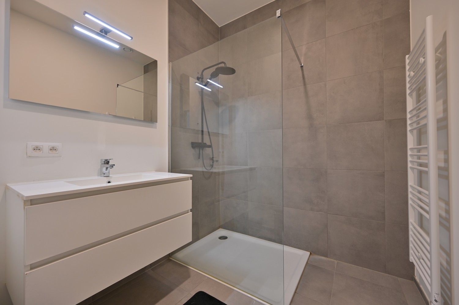 - badkamer voorzien van inloopdouche en meubel met wastafel