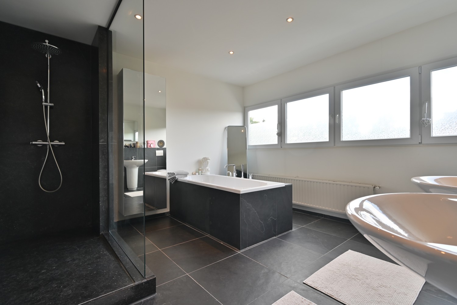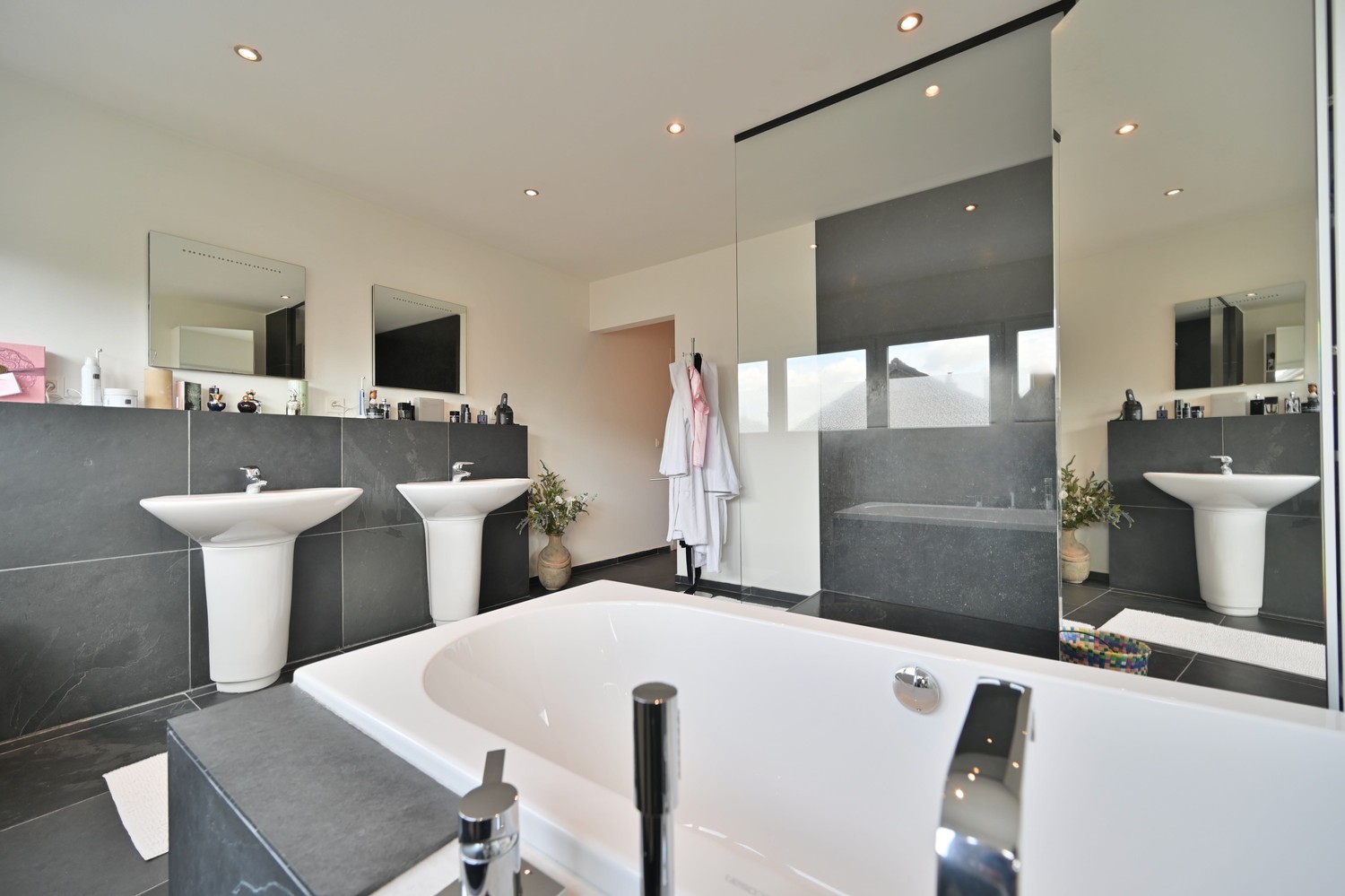 - Luxe badkamer met inloopdouche, vrijstaand ligbad, dubbele wastafel en hangtoilet