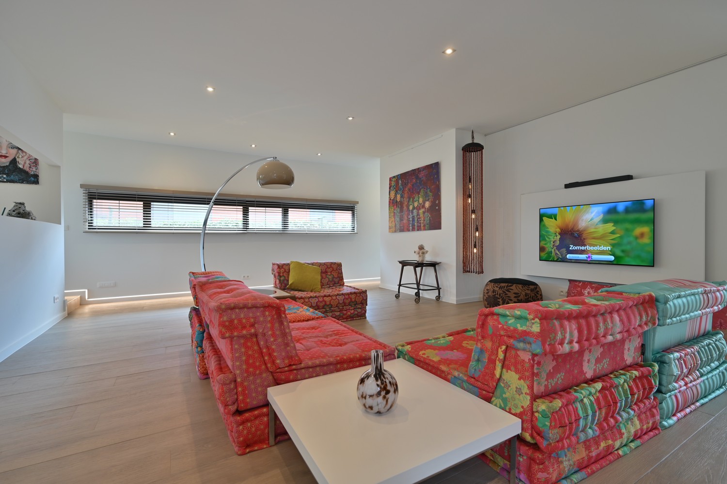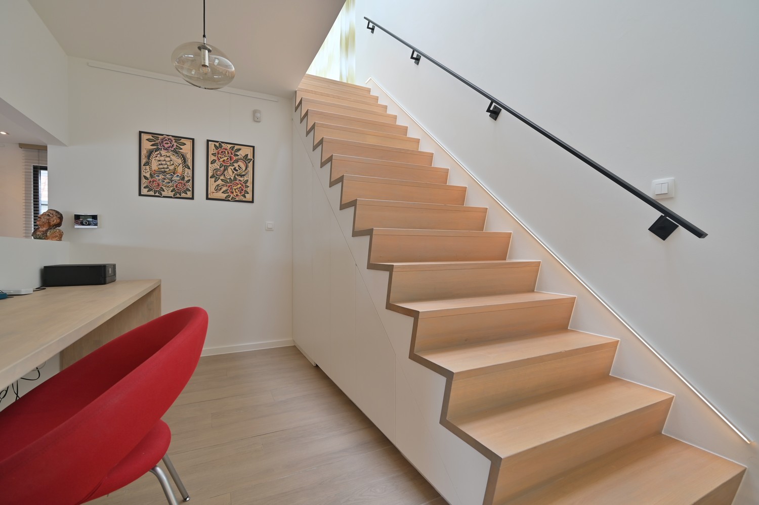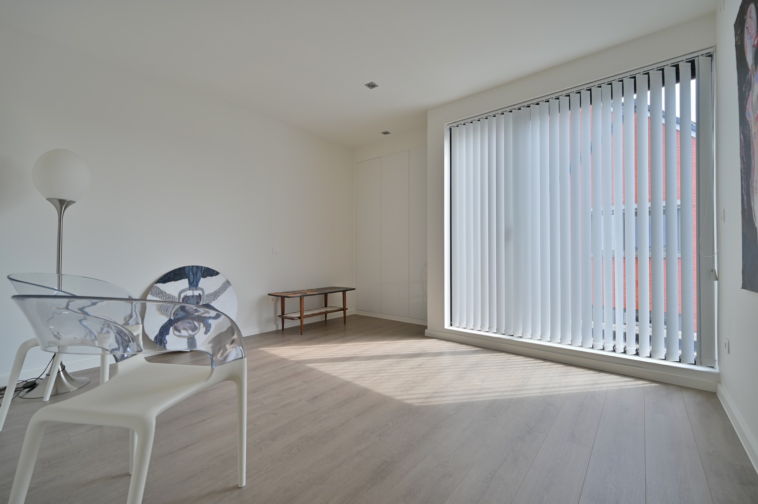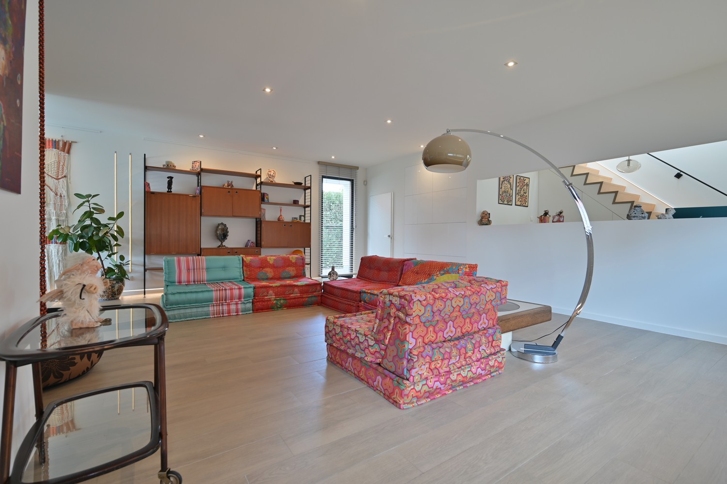 - royale leefkamer (keramische parkettegel) met bureauhoek en voorzien van inbouwkasten