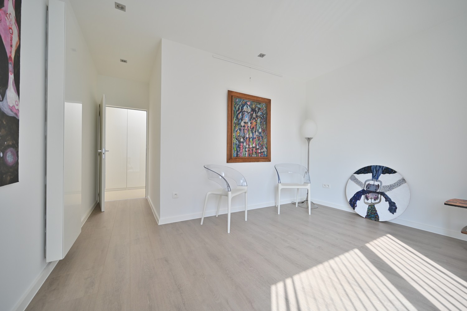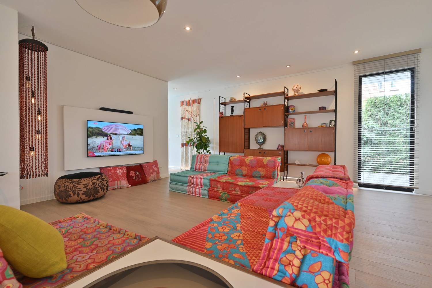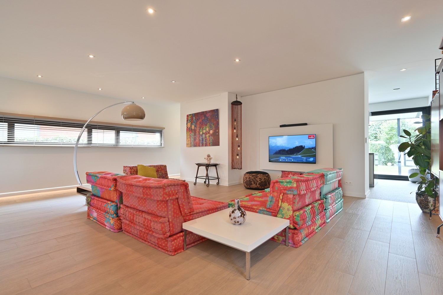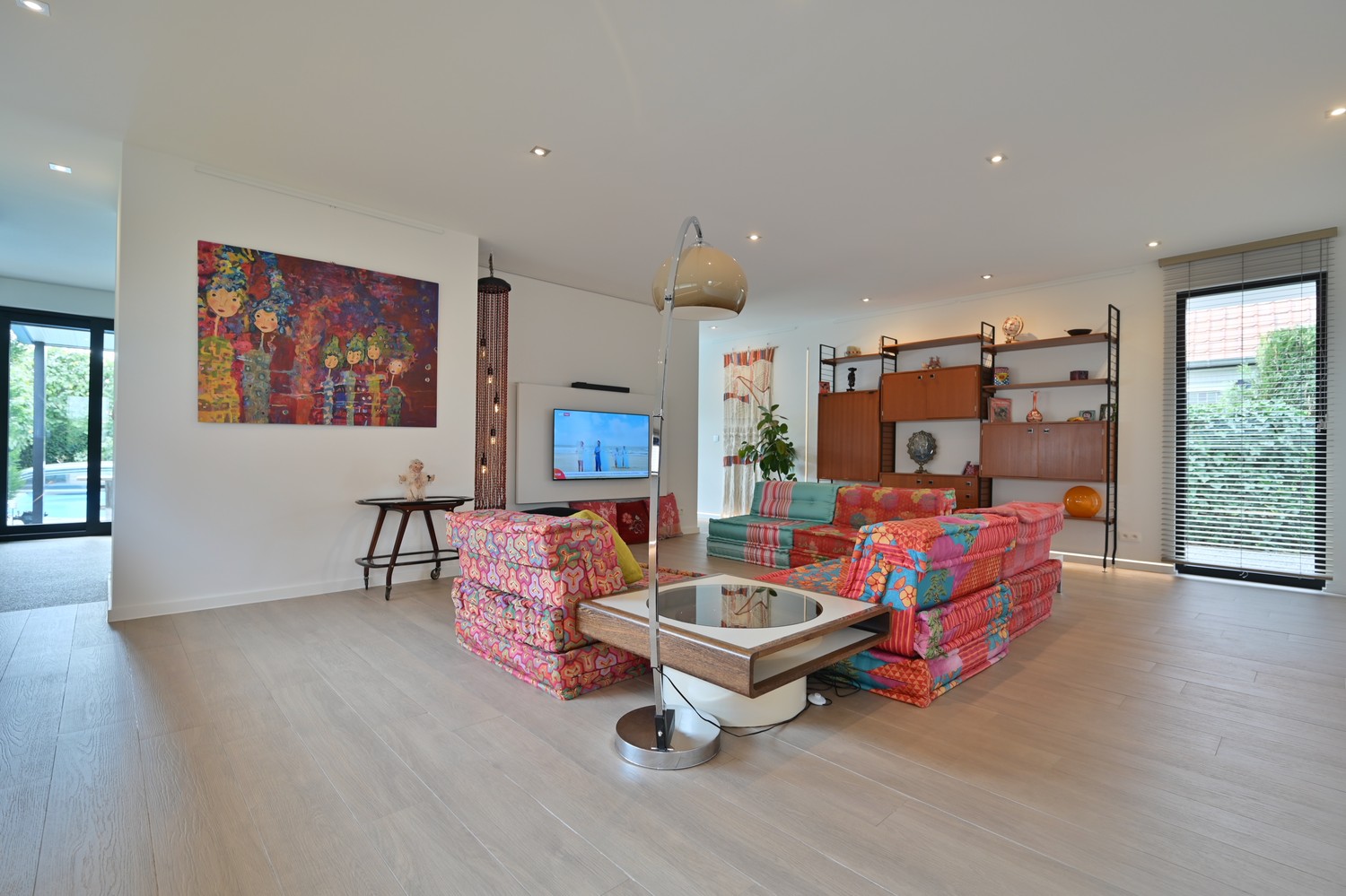 - royale leefkamer (keramische parkettegel) met bureauhoek en voorzien van inbouwkasten