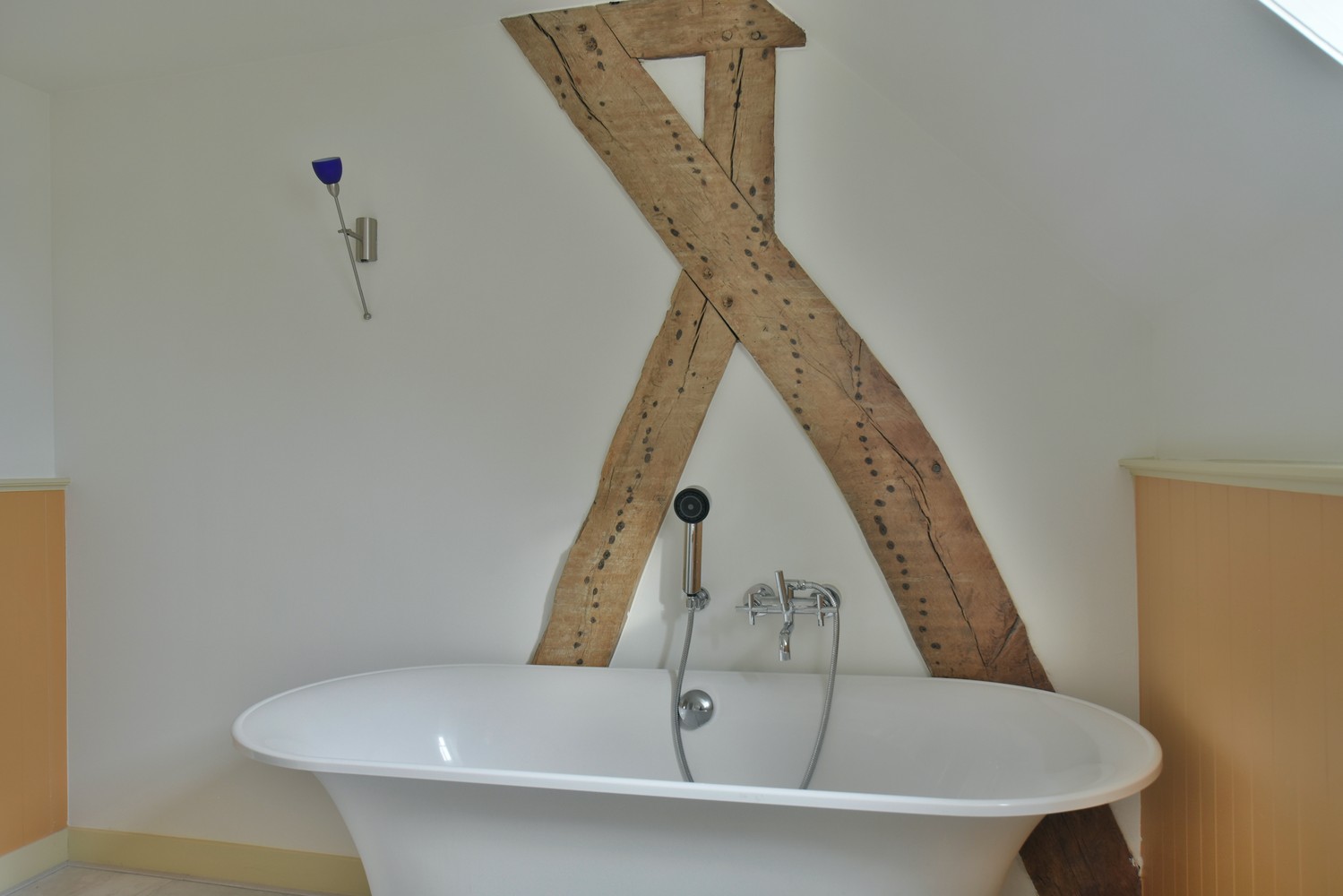 - Badkamer met vrijstaand bad, douche en dubbele wastafel