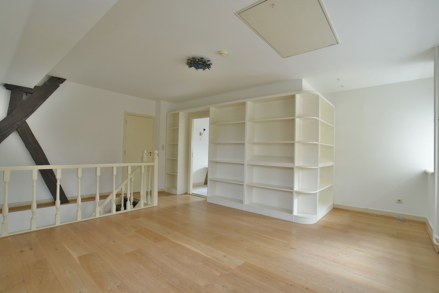 De tegenoverliggende schuur vormt een waardevolle uitbreiding van het eigendom en biedt tal van mogelijkheden. Op het gelijkvloers bevindt zich een woonkamer die aansluit op de tuin, evenals een badkamer met toilet, douche en wastafel. Het gebouw heeft zijn oorspronkelijke charme behouden met een indrukwekkend dak met oude houten spanten. Op de verdieping bevinden zich twee zolderkamers met een ruime overloop, ideaal voor diverse invullingen.
