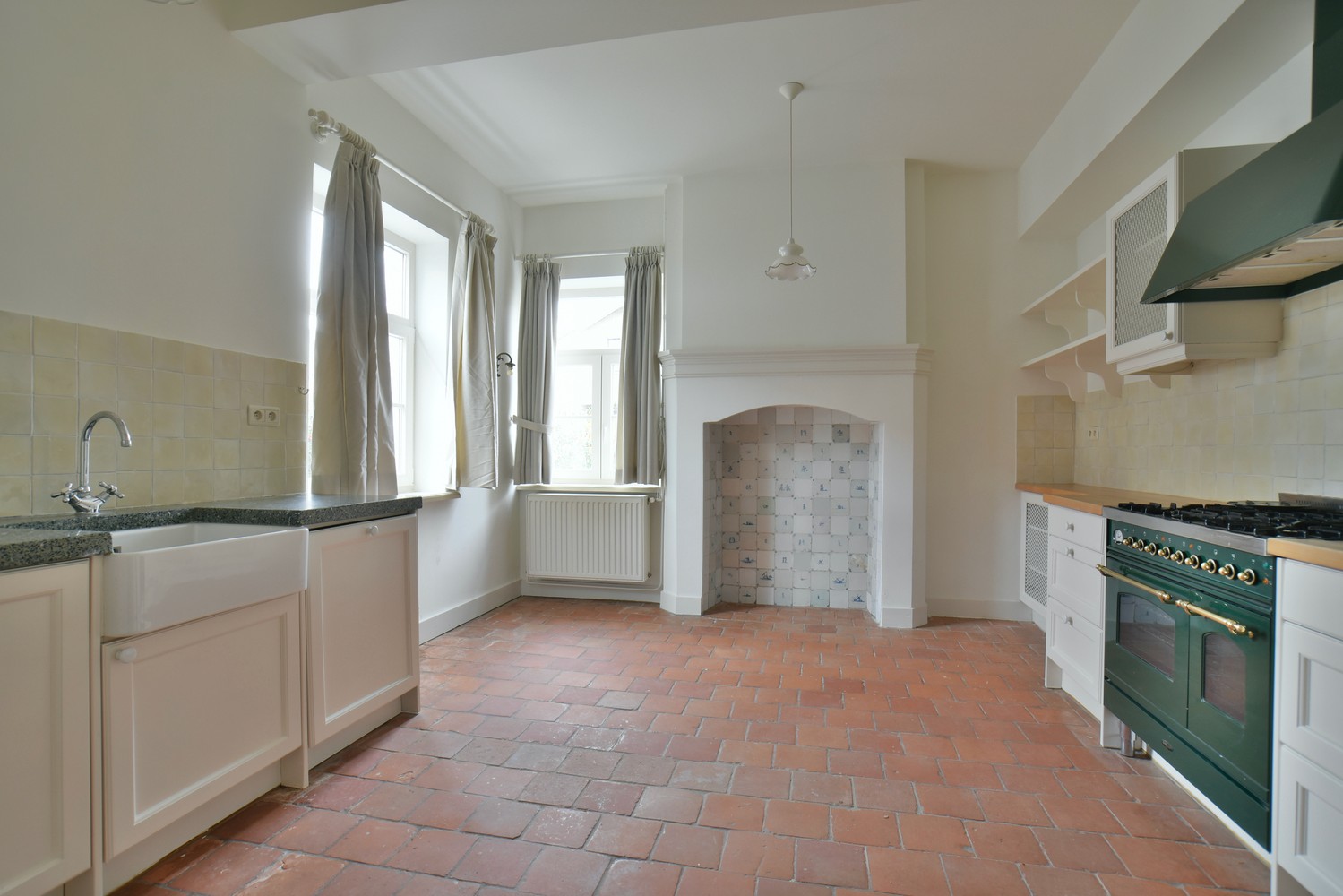 Via de inkomhal bereikt u de gezellige woonkamer, die het warme hart van de woning vormt. De rustieke vloer en de sfeervolle open haard zorgen voor een authentieke en huiselijke sfeer. Het verhoogde zitgedeelte met houten vloer en tweede open haard creëert een bijzonder intieme plek. Onder dit gedeelte bevindt zich een authentieke gewelfde voorraadkelder, een charmant historisch detail. Aansluitend ligt de keuken, uitgerust met gasfornuis, oven en vaatwasser. Verder zijn er een gastentoilet en een praktische bijkeuken.